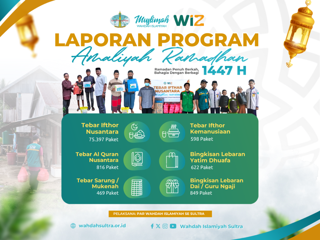 KENDARI – Semangat berbagi dan kepedulian sosial kembali ditunjukkan oleh Dewan Pengurus Wilayah (DPW) Wahdah Islamiyah Sulawesi Tenggara (Sultra) melalui Program Amaliyah Ramadhan 1447 Hijriyah. Mengusung tema “Ramadhan Penuh Berkah, Bahagia Dengan Berbagi”, program ini berhasil menjangkau puluhan ribu penerima manfaat di berbagai wilayah.