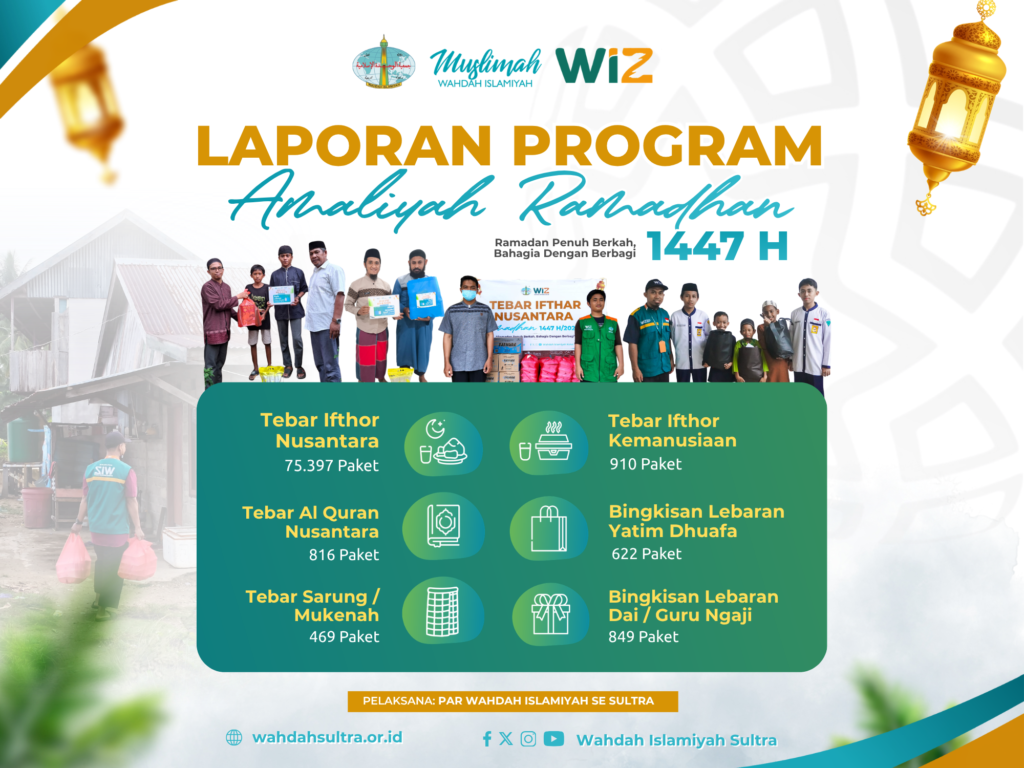 KENDARI – Semangat berbagi dan kepedulian sosial kembali ditunjukkan oleh Dewan Pengurus Wilayah (DPW) Wahdah Islamiyah Sulawesi Tenggara (Sultra) melalui Program Amaliyah Ramadhan 1447 Hijriyah. Mengusung tema “Ramadhan Penuh Berkah, Bahagia Dengan Berbagi”, program ini berhasil menjangkau puluhan ribu penerima manfaat di berbagai wilayah.